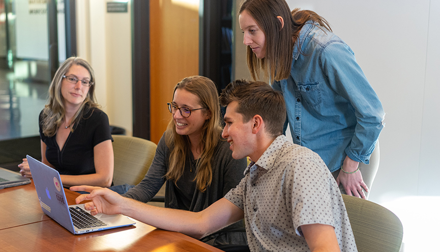 Tre elever med speciale i Offentlig Administration og en elev med speciale i Økonomi.